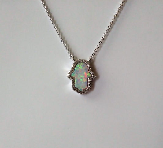 Sterling Silver and Simulated Fire Opal Hand Necklace