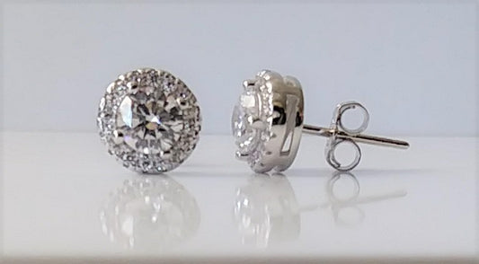 Sterling Silver and Cubic Zirconia Round Post Earrings