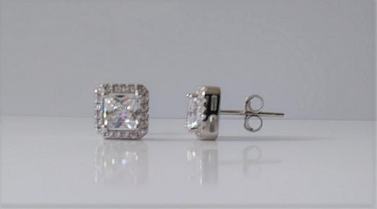 Sterling Silver and Cubic Zirconia Square Post Earrings