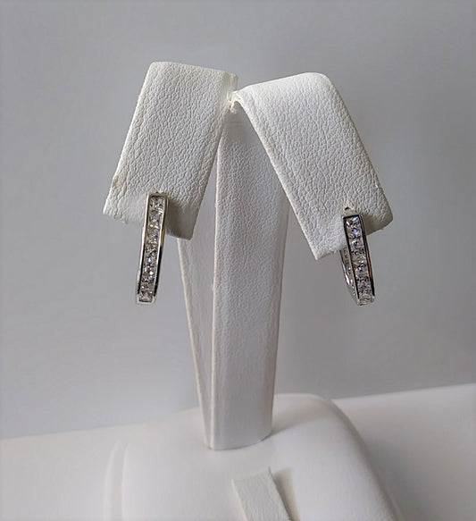Sterling Silver Huggie Hoop and Cubic Zirconia Earrings
