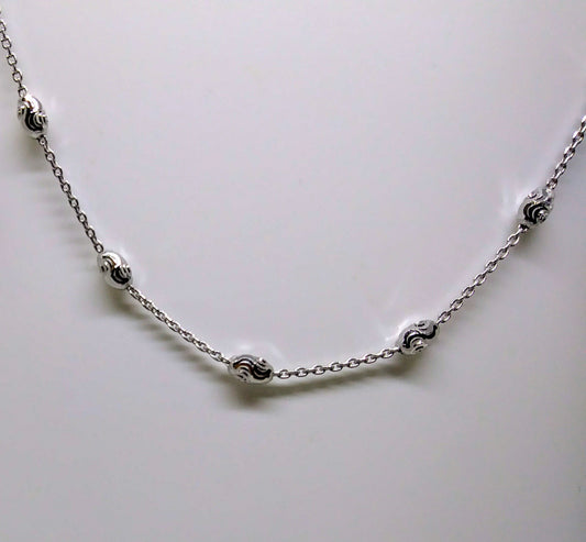 Sterling Silver and Rhodium Diamond Cut Beads Necklace