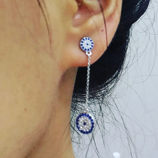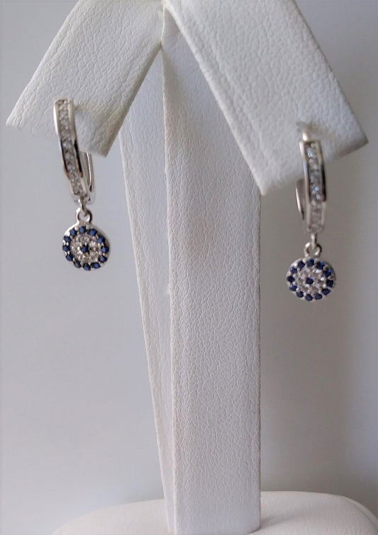 Evil Eye CZ Charm Turkish Design Sterling Silver Earrings
