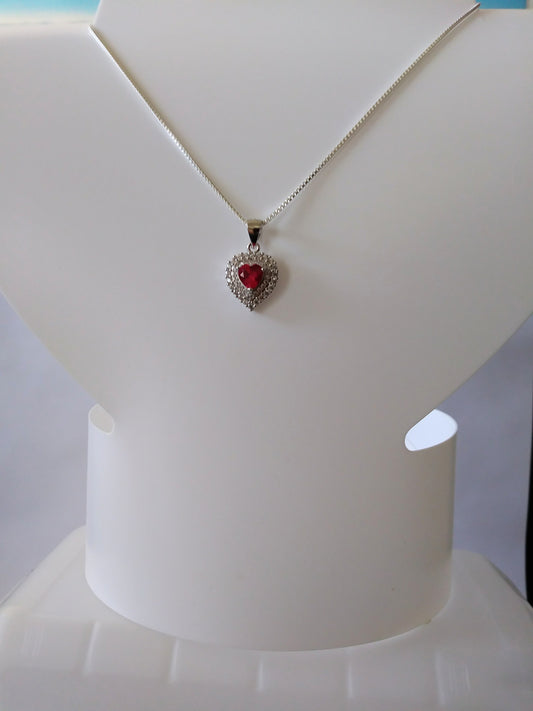 Sterling Silver Ruby Red Heart Necklace with 18in. box chain