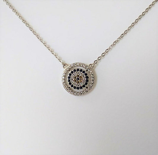 Evil Eye CZ Charm Turkish Design Sterling Silver Necklace