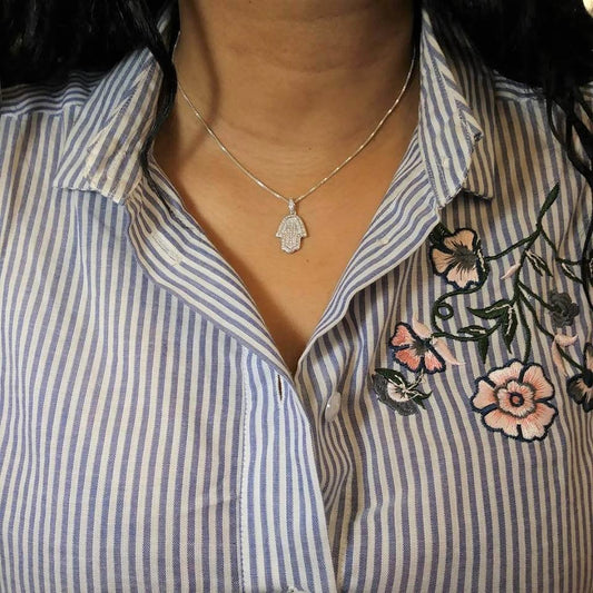 Sterling Silver and Lab Diamond Hamsa Pendant with 18 in. sterling silver box chain
